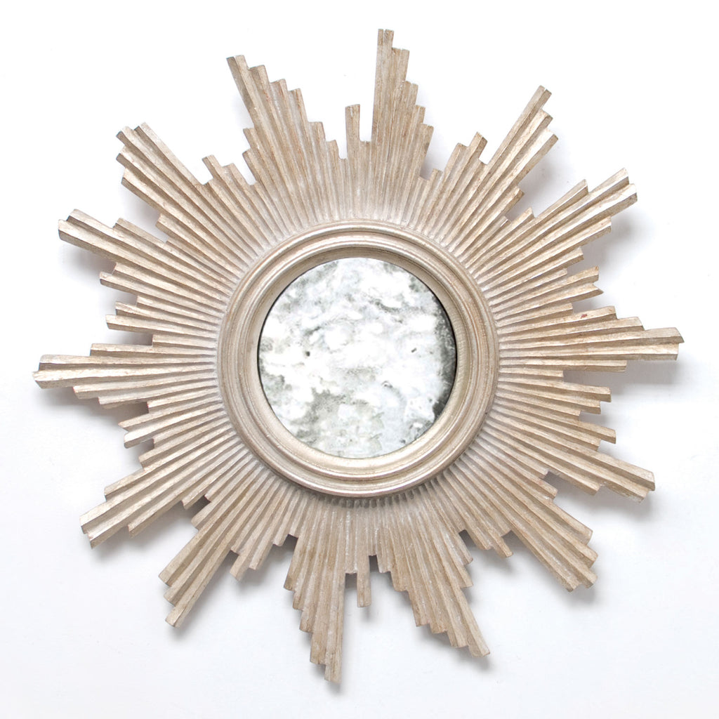 From Worlds Away, this wall mirror invites guests to peer into its design with contemporary allure. Hang this accent in a foyer, hallway or living room for a statement look. Handcarved gold leaf or silver leaf wall mirror with antique mirror inset.