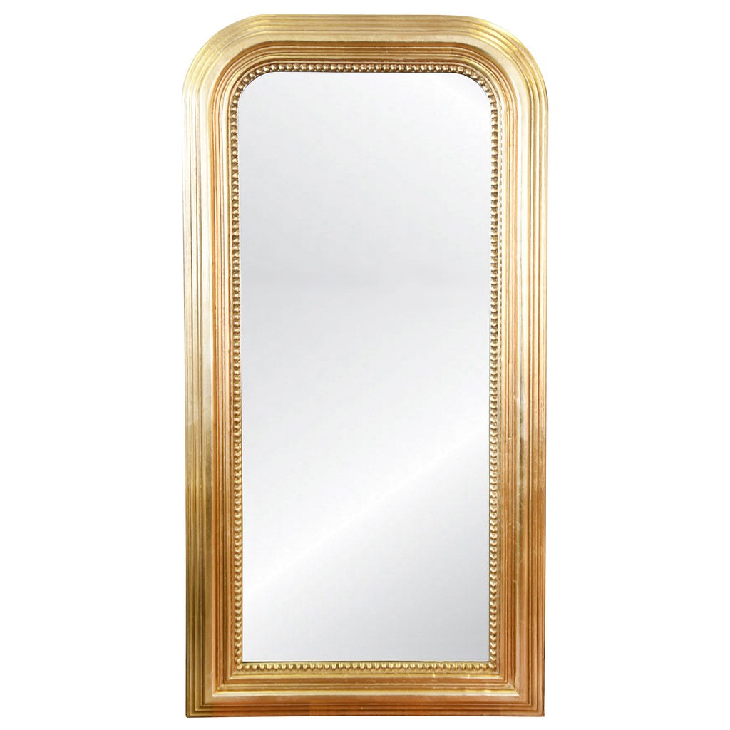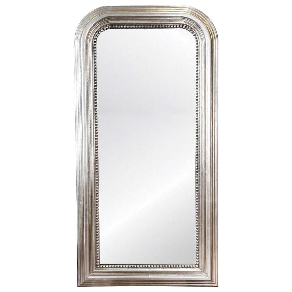From Worlds Away, this wall mirror invites guests to peer into its design with contemporary allure. Hang this accent in a foyer, hallway or living room for a statement look. The Worlds Away Waverly floor mirror featuring hand-carved rectangular non-antiqued mirror with curved top in Gold Leaf or Silver Leaf.