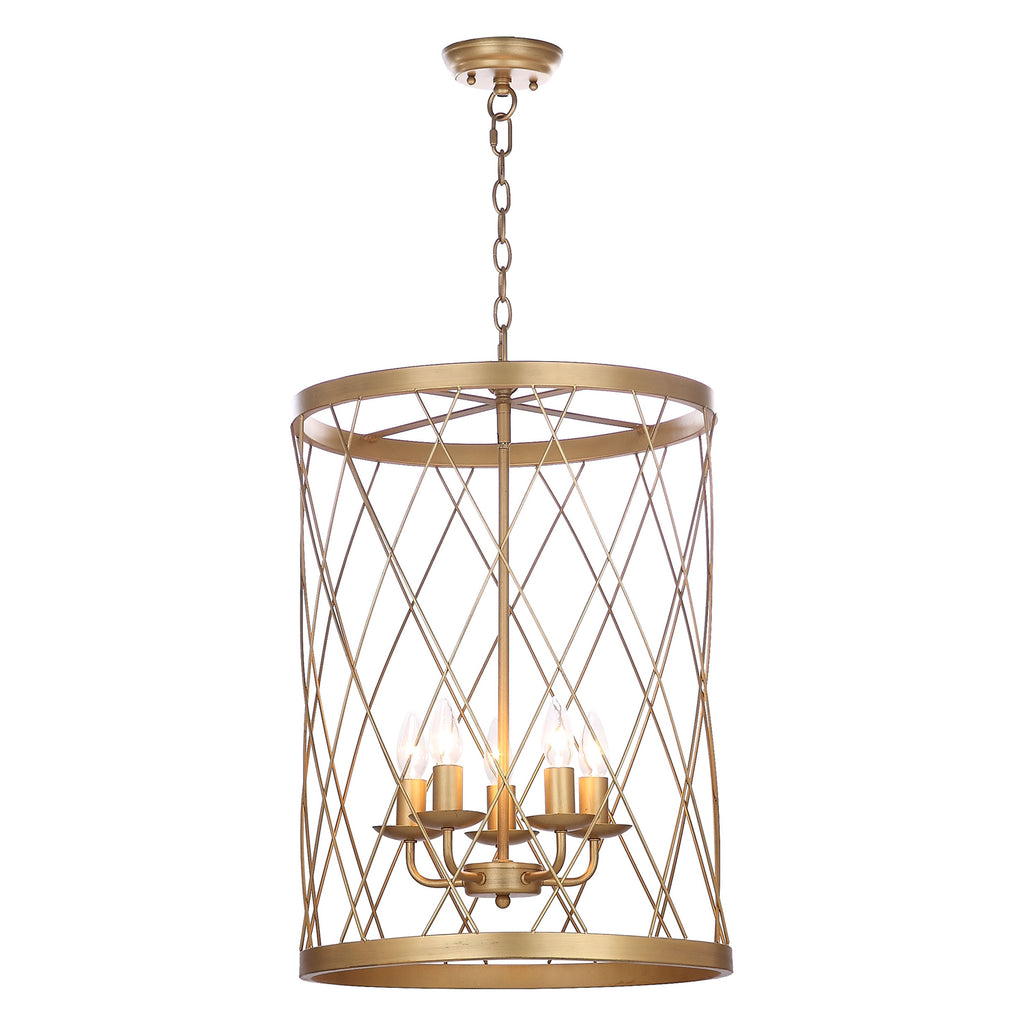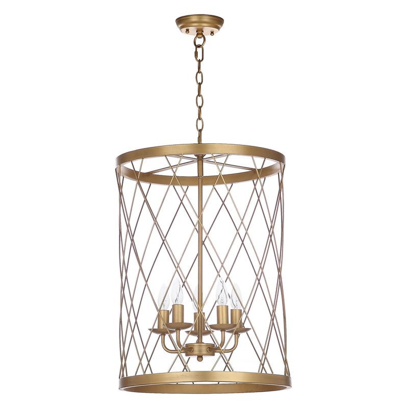 Perched in a posh gilded cage, the classic candelabra of this modern Worthington pendant lamp brings aesthetic ambience to any refined interior. Designed to reflect the gracious living embodied by pre-war Park Avenue style, its opulent gold finish makes it timeless.