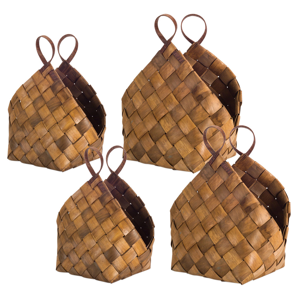 Woven Metasequoia Wood Basket with Handles Set of 4