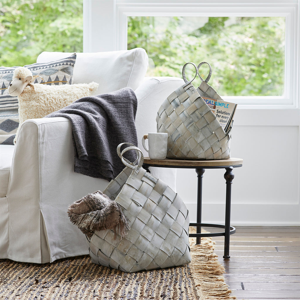 Great for displaying your fresh cut floral bouquets or faux floral arrangements, this set of Metasequoia Floor Baskets will fit right in with your personal style of decor. The cool white-washed tones and the woven metasequoia wood composition is a great addition to both every day and holiday seasonal decor. Complete the look by adding a floral insert or other decorative accents to the baskets.