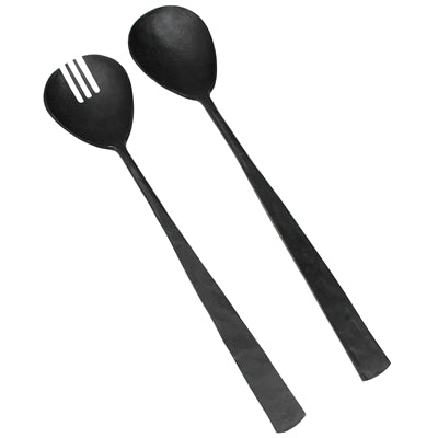 Our salad servers are hand forged flaunting a softly hammered texture with a black zinc finish. Hand wash is recommended.