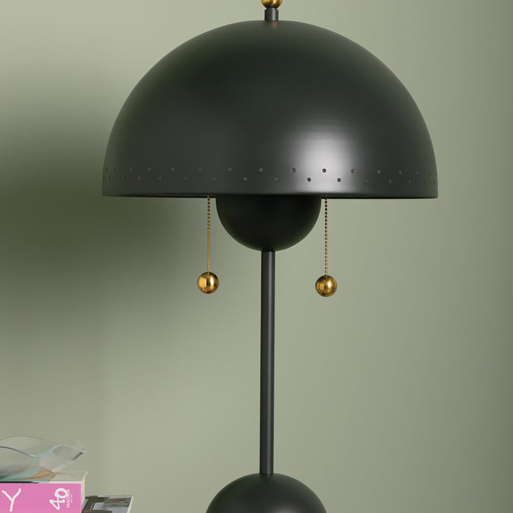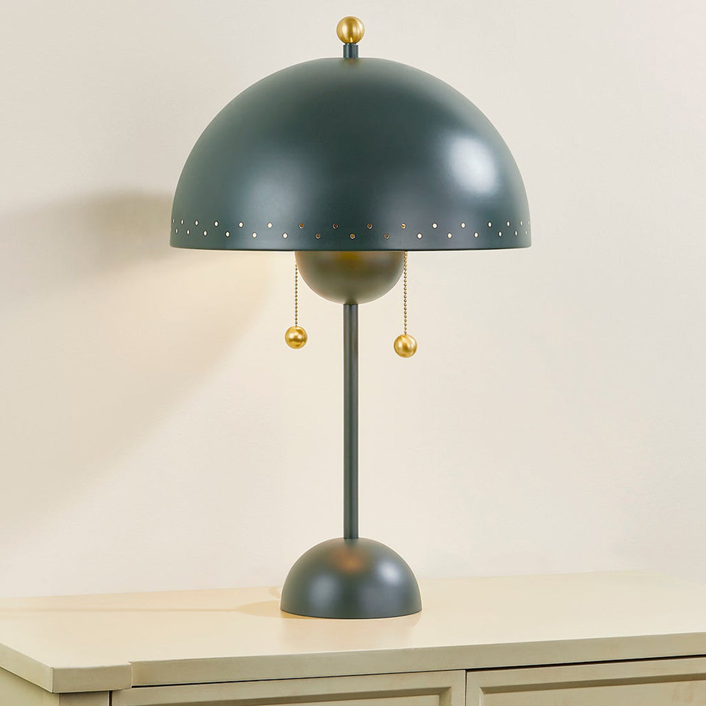 Influenced by midcentury design, Mitzi Jojo Table Lamp features a dome-shaped shade with decorative perforations that allow light to escape. Both the pendant and sconce come in a Soft White finish while the lamp is available in a moody green as an eye-catching accent piece. The pendant features 2 lights within its bowl, optimizing illumination. All variations are elegantly accented in Aged Brass. Part of our Zoe Feldman collection.